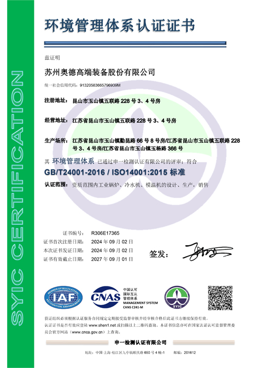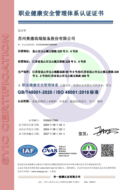 10月奧德昆山平謙廠區(qū)投入生產(chǎn) 成立鍋爐事業(yè)部